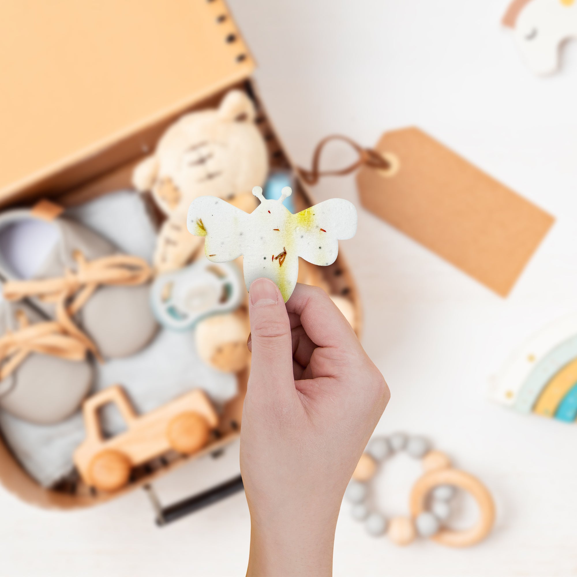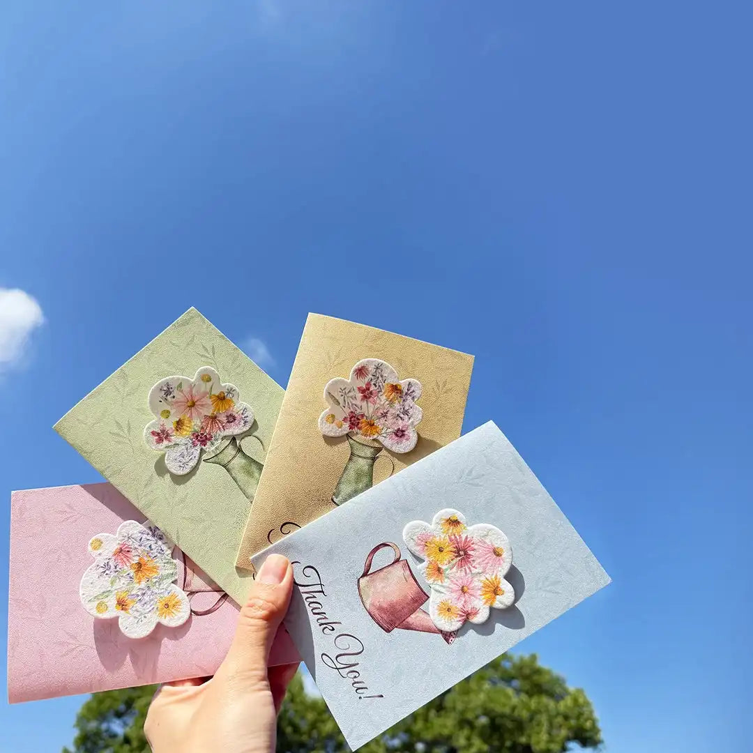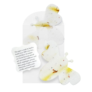 Our seed paper is made from eco-friendly paper embedded with 6 US-origin wildflower seeds in each piece. You can plant the paper directly into soil, water it, and watch wildflowers grow.